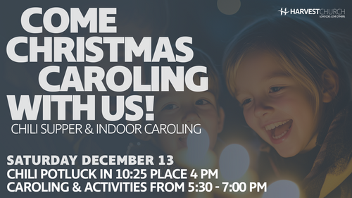 Bring your family out for a great time caroling and spreading Christmas cheer at 3 locations in Beaver Dam. Bring your favorite chili and eat dinner with us at church before splitting up into teams. This will be a great way to give back and make memories this Christmas. All caroling and activities are indoors and all supplies will be provided. Reach out to the office with any questions or to let us know you're coming.