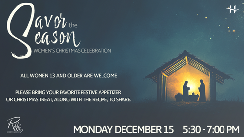 Join us on Monday, December 15th, and prepare your heart to savor the Season. We'll read through the birth of Jesus Christ and share our favorite holiday recipes and meaningful traditions. We hope you'll come away refreshed and inspired this Christmas Season.