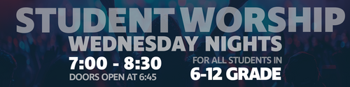 Student Worship is designed for our middle school and high school students! You will experience fun activities, engaging biblical teaching that will help you relate your faith to life, and then spend time in our life groups - where you will be paired with like minded students to talk about real life faith.